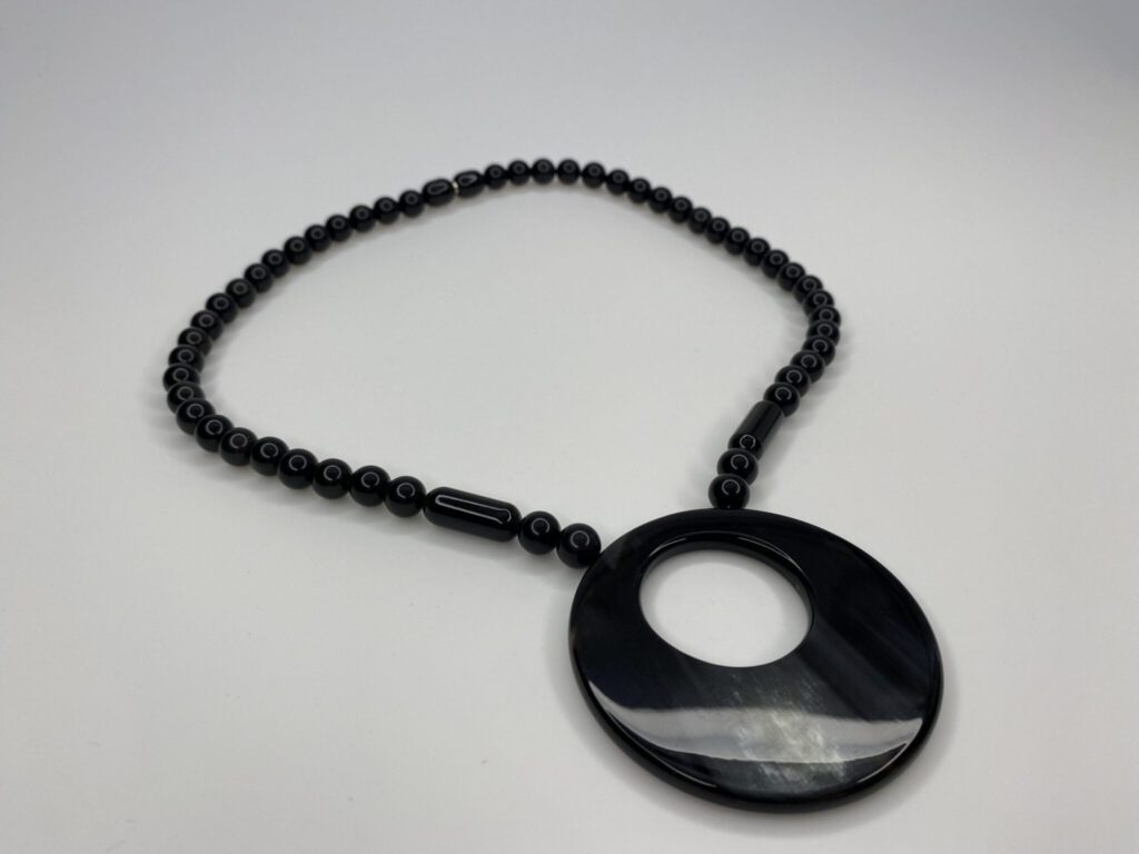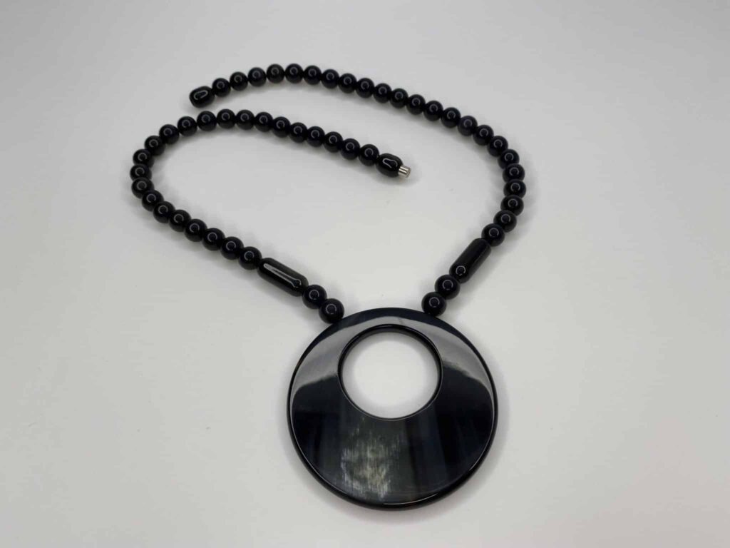- wunderschöne Kombination aus großem dunklem Hornanhänger und kleinen Hornkugeln