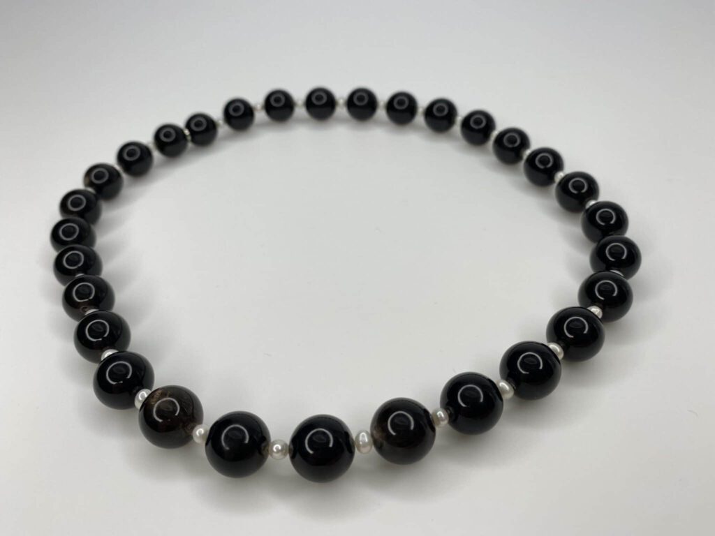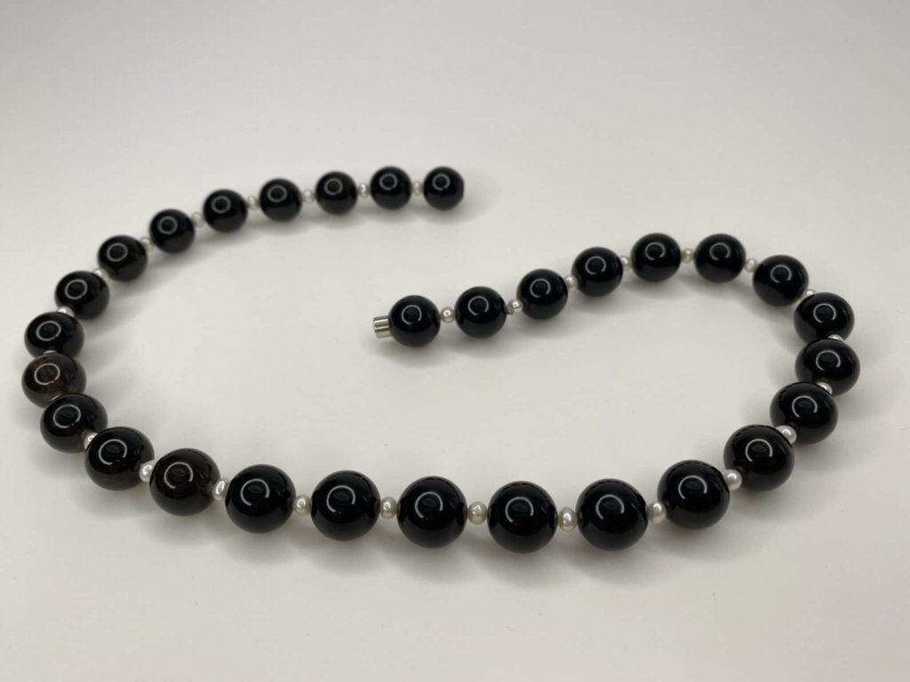 - wunderschöne Kombination aus dunklen Hornkugeln und Perlen