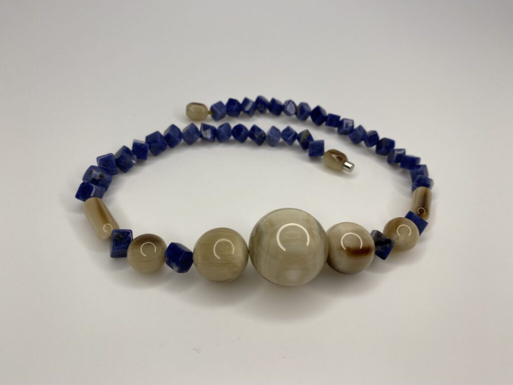- wunderschöne Kombination aus hellen Hornkugeln und blauem Naturstein